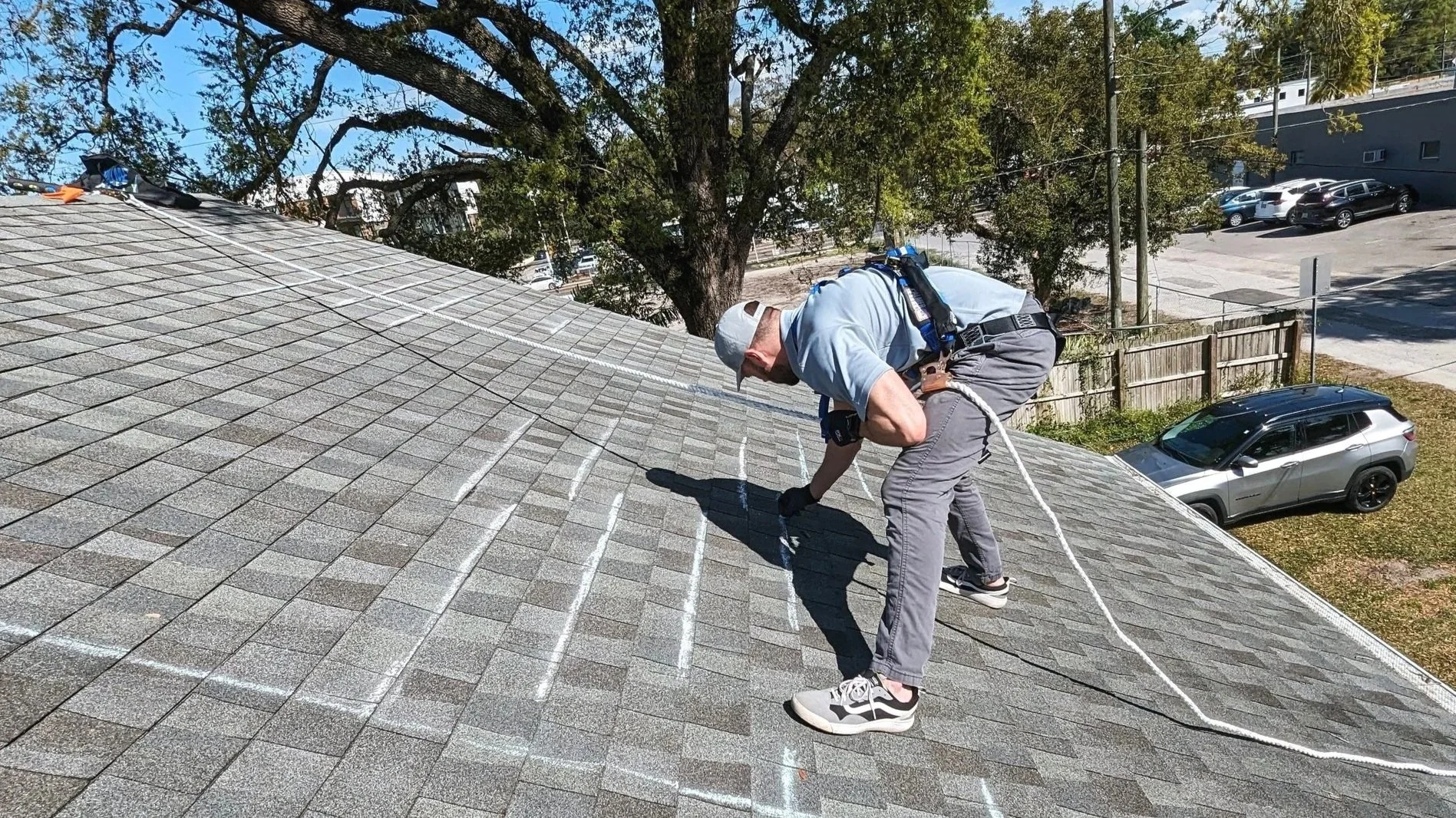 Unsealed shingles are marked with a water-soluble chalk that washes away in the rain.